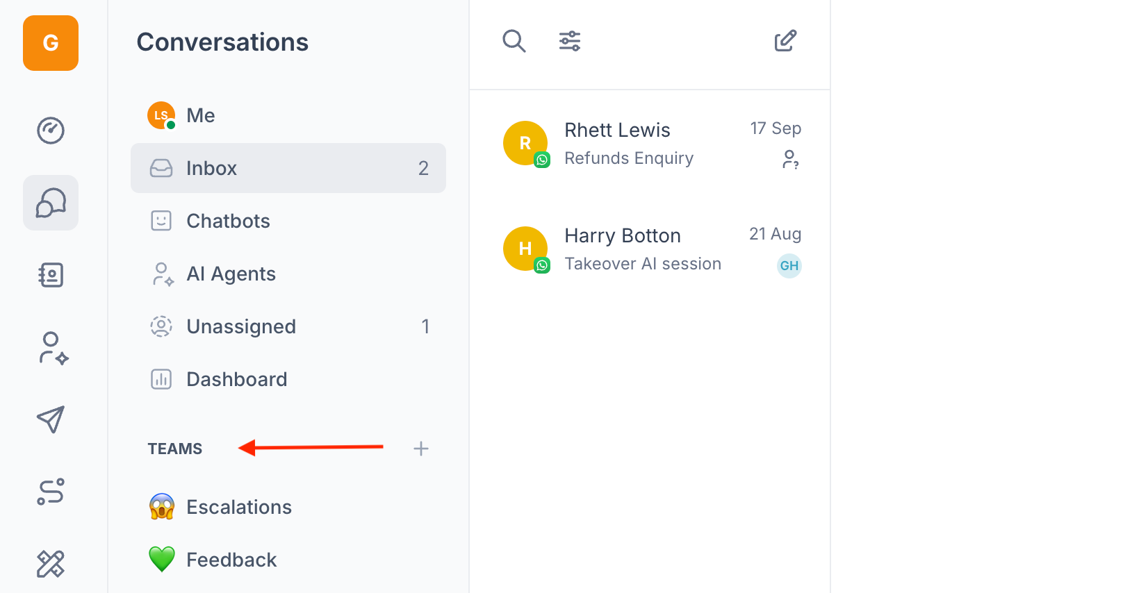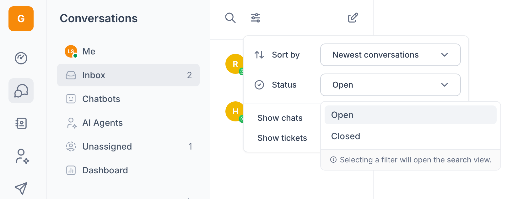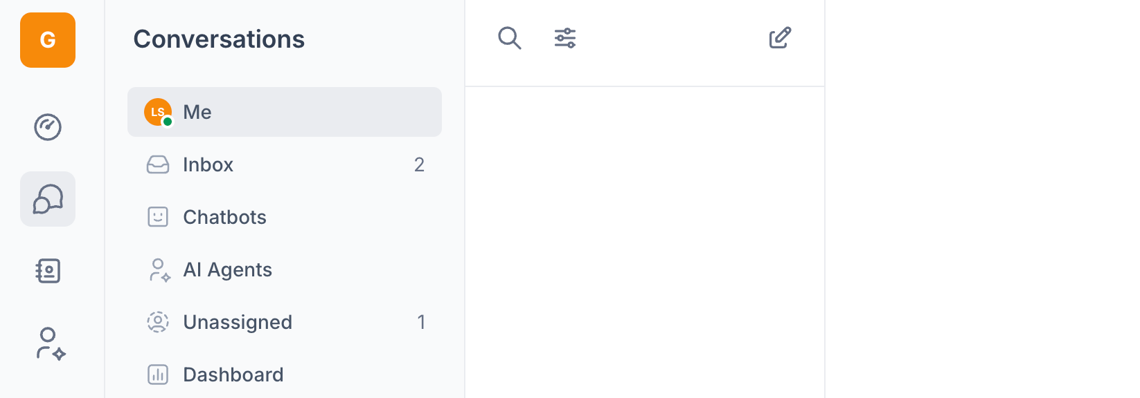 * Workspace owners or supervisors have additional access to see Chatbot and AI Agent views in the Conversations nav.
